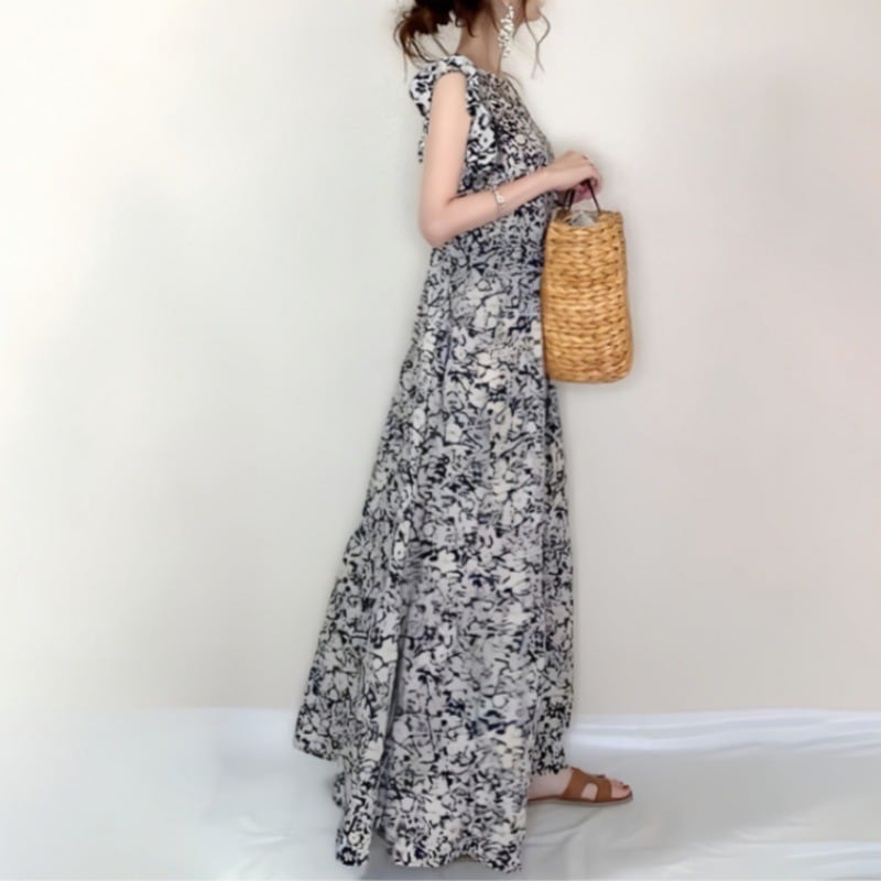 レディース ワンピース ロング ノースリーブ ラウンドネック 大人可愛い きれいめ おしゃれ かっこいい ガーリー クール プリント 春 夏 通勤 デート お出かけ お泊まり イベント リゾート 旅行 海 プール レストラン ビーチ 公園 女子会 休日 ホテル ショッピング コンサート ライブ カフェ 韓国 コーデ 楽ちん プレゼント 普段使い 着回し モテ インスタ映え フリーサイズ ワンサイズ