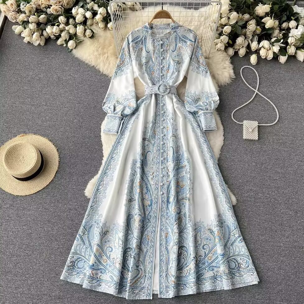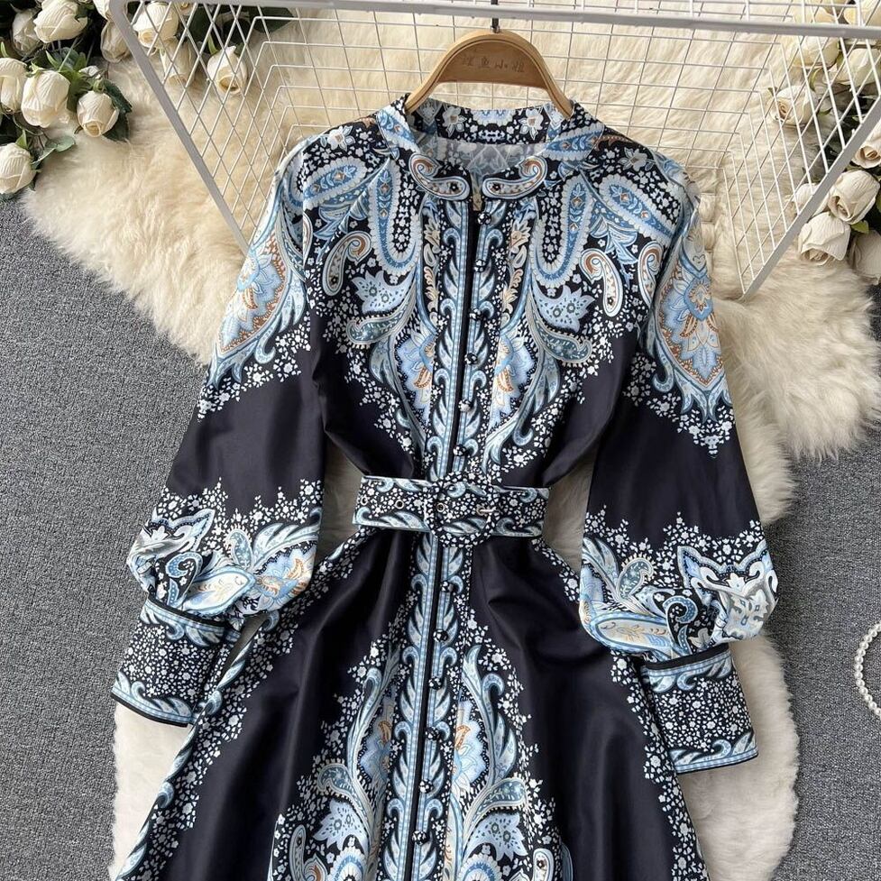 ワンピース ロングワンピース フレアワンピース 総柄ペイズリーワンピース ノーカラー クルーネック 長袖 ドロップショルダー ボリュームスリーブ ウエストベルト プリントワンピース ドレス レディース かわいい 大人可愛い おしゃれ ガーリー エレガント キュート きれいめ 上品 お出かけ ショッピング 休日 カジュアル デート 女子会 イベント 体型カバー ゆったり スタイルUP デイリー 普段使い フェミニン シンプル クラシカル ラグジュアリー レトロ スタイリッシュ 高見え 鮮度アップ