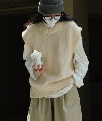 レディース トップス ニット ベスト ハーフ 袖なし ノースリーブ Uネック ストレート 編み上げ 中厚手 ウール シェニル シンプル カジュアル ラフ リラックス 無地 秋 ママ マタニティ 10代 20代 30代 40代 オフィス ビジネス OL 通勤 学生 学校 通学 デート お出かけ お泊まり 旅行 公園 女子会 休日 ショッピング 合コン コンパ カフェ 重ね着 楽ちん 暖かい 普段使い 着回し 定番 ゆったり ゆる フリーサイズ オフホワイト アプリコット