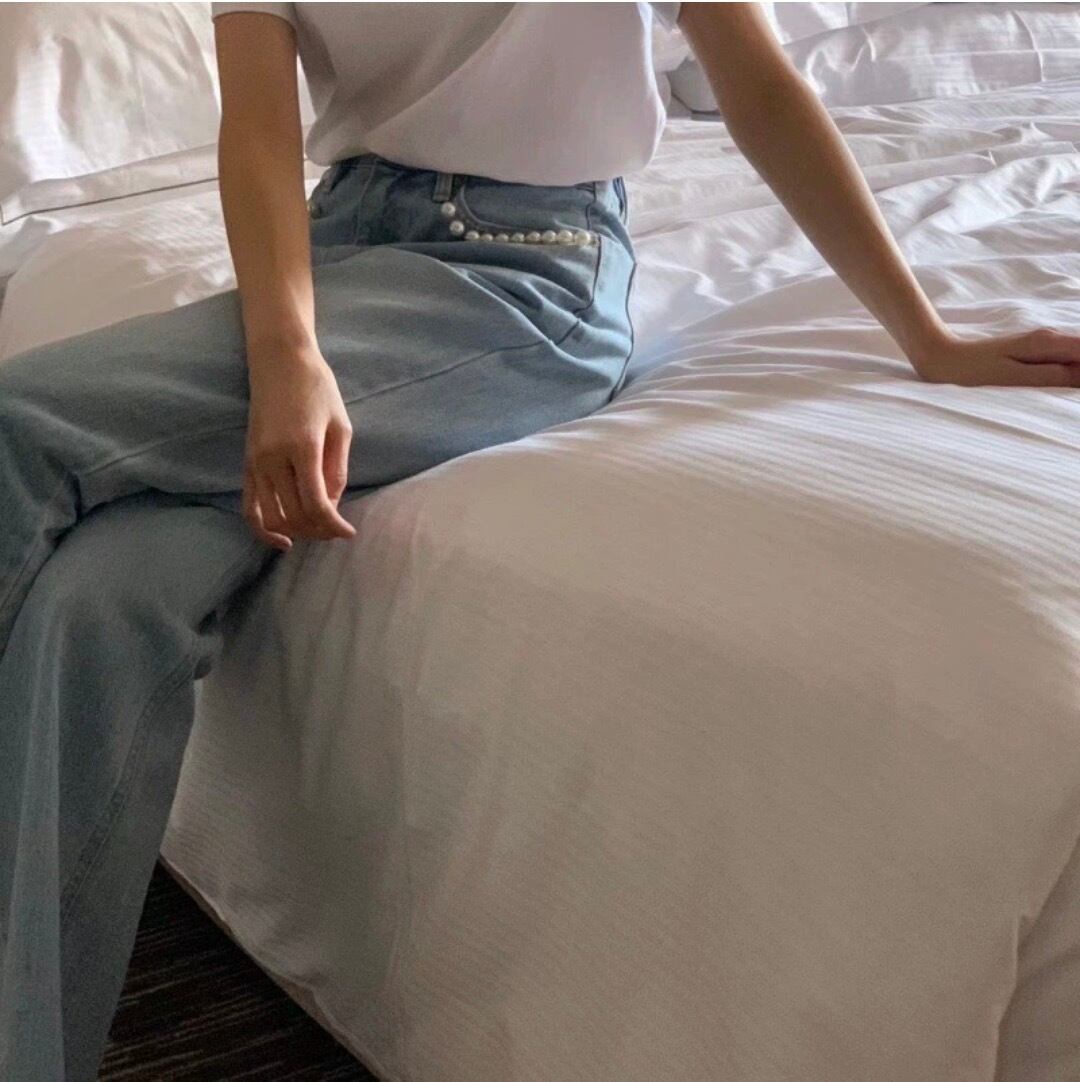 大人女子にぴったりの、シンプルでお洒落なデニムパンツのご紹介です!こちらのストレートパンツは、ぴったりとしたラインが美しいIラインシルエットとなっており、さりげないパールがアクセントとなっています。普段使いやデート、女子会など、さまざまなシ occasionsに対応可能なデザインで、あなたのスタイルを一段と引き立てます。