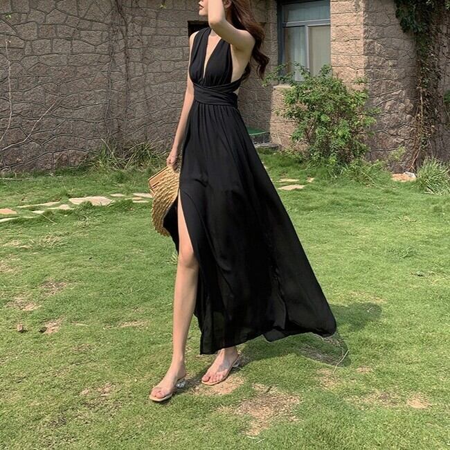 レディース ワンピース ロング ノースリーブ ホルターネック シフォン スリット ハイウエスト 背中見せ 大人可愛い きれいめ おしゃれ かっこいい ガーリー クール ロマンティック セクシー 無地 春 夏 通勤 デート お出かけ お泊まり イベント リゾート 旅行 海 プール レストラン ビーチ 公園 女子会 休日 ホテル ショッピング コンサート ライブ カフェ 韓国 コーデ 楽ちん プレゼント 美脚 脚長 普段使い 着回し モテ インスタ映え S M L XL 大きいサイズ ブラック