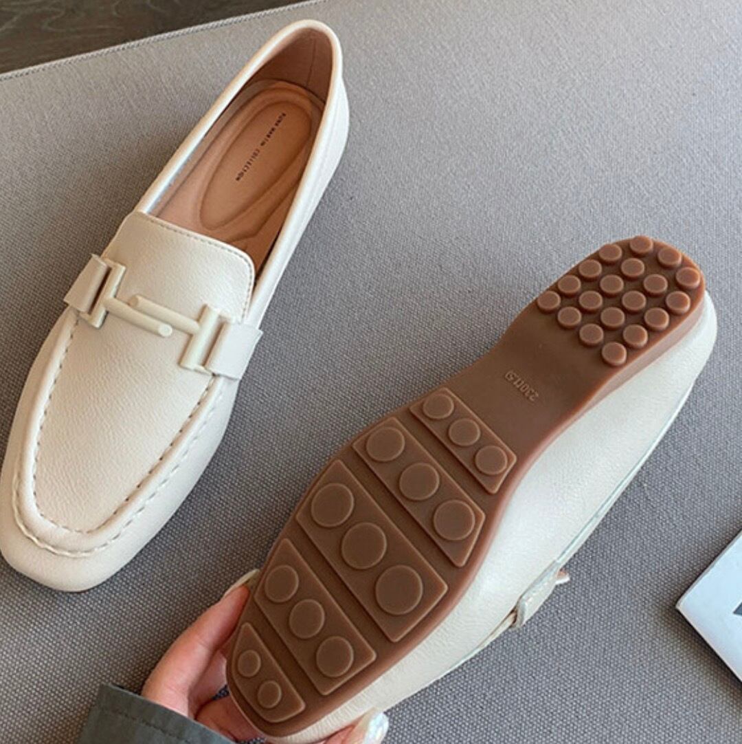 このシューズは、モカシンデザインとフラットソールが魅力的で、大人可愛い雰囲気を演出します。履きやすさを重視した設計で、長時間履いても疲れにくく、歩きやすさも抜群。シンプルでありながらエレガントな印象を与え、カジュアルなコーディネートにも、きれいめスタイルにもマッチします。