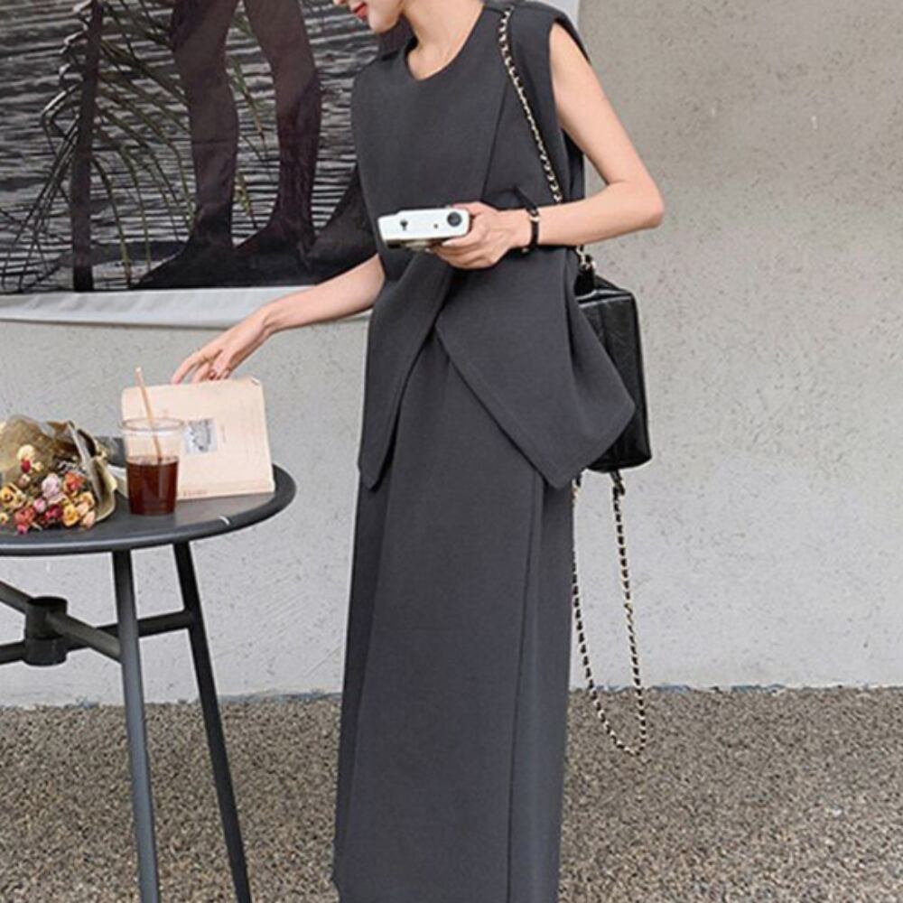 レディース スカート トップス ニット セーター セットアップ ニットスカート 膝上 ノースリーブ Uネック タイト スリム 細身 Iライン かわいい 大人可愛い シンプル カジュアル おしゃれ こなれ感 ルーズ キュート ベーシック ナチュラル 無地 秋 冬 ママ 通勤 学生 学校 通学 デート お出かけ 旅行 レストラン 女子会 休日 バカンス ホテル ショッピング カフェ コーデ 普段使い 着回し モテ S M L XL グレー