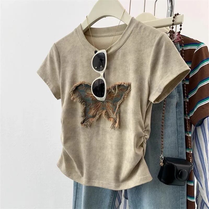トップス カットソー Tシャツ 半袖 クルーネック シャーリング プルオーバー ミディアム丈 可愛い かわいい 大人可愛い きれいめ シンプル 上品 おしゃれ レトロ かっこいい カジュアル ラフ こなれ感 個性的 主役級 存在感 抜け感 ナチュラル ベーシック メンズライク 蝶々 無地 女性用 レディース ママ OL 通勤 オフィス 学生 通学 デート お出かけ お泊まり 女子会 旅行 アウトドア カフェ ショッピング コンパ 普段使い デイリー イベント 着回し 重ね着 S M L XL トレンド