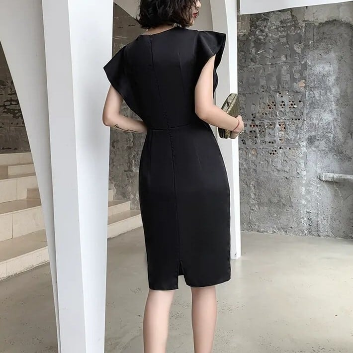 大人可愛いスタイルを演出する、ドレス ワンピースが登場です!ウェディングやパーティーはもちろん、結婚式、二次会、披露宴、演奏会、発表会、ステージ、舞台など、さまざまなシーンで活躍すること間違いなし。ミモレ丈の半袖デザインとVネックが上品な印象を与え、エレガントで存在感のある装いを演出します。このワンピースは、シンプルでありながら華やかさを兼ね備えており、デイリーコーデから特別なイベントまで幅広く使えるアイテムです!