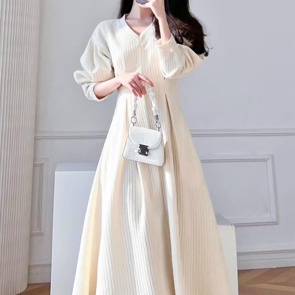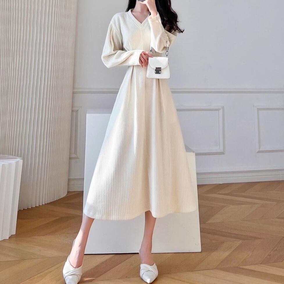 ワンピース ロングワンピース タックワンピース リブワンピース フレアワンピース ウエストタックリブワンピース Vネック 長袖 ドロップショルダー ロング丈 ひざ下丈 Aライン レディース かわいい 大人可愛い おしゃれ ガーリー エレガント キュート きれいめ 上品 お出かけ ショッピング 休日 通勤 通学 デート 女子会 イベント 旅行 体型カバー ゆったり スタイルUP デイリー 普段使い フェミニン シンプル クラシカル カジュアル レトロ スタイリッシュ 高見え 鮮度アップ