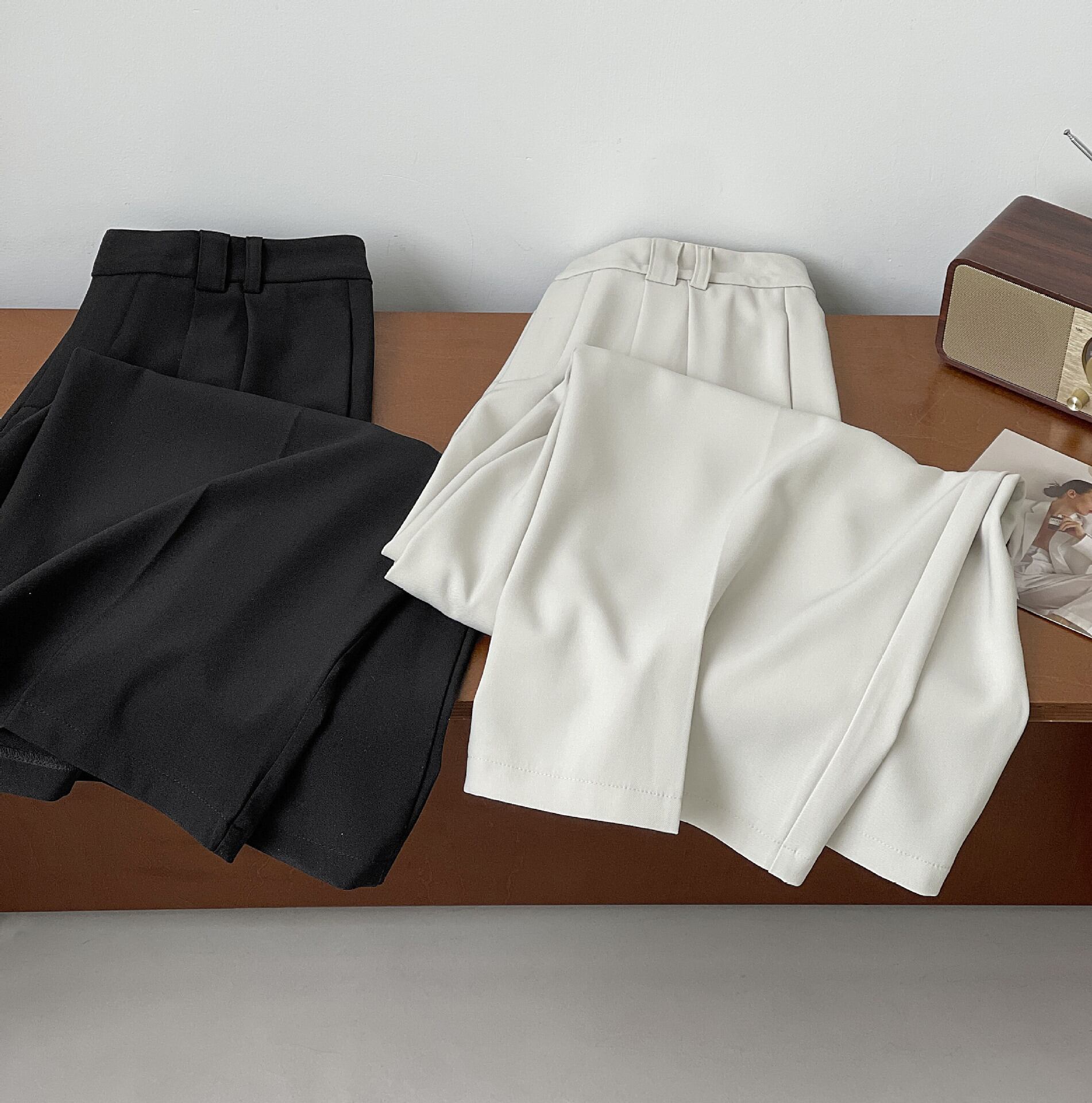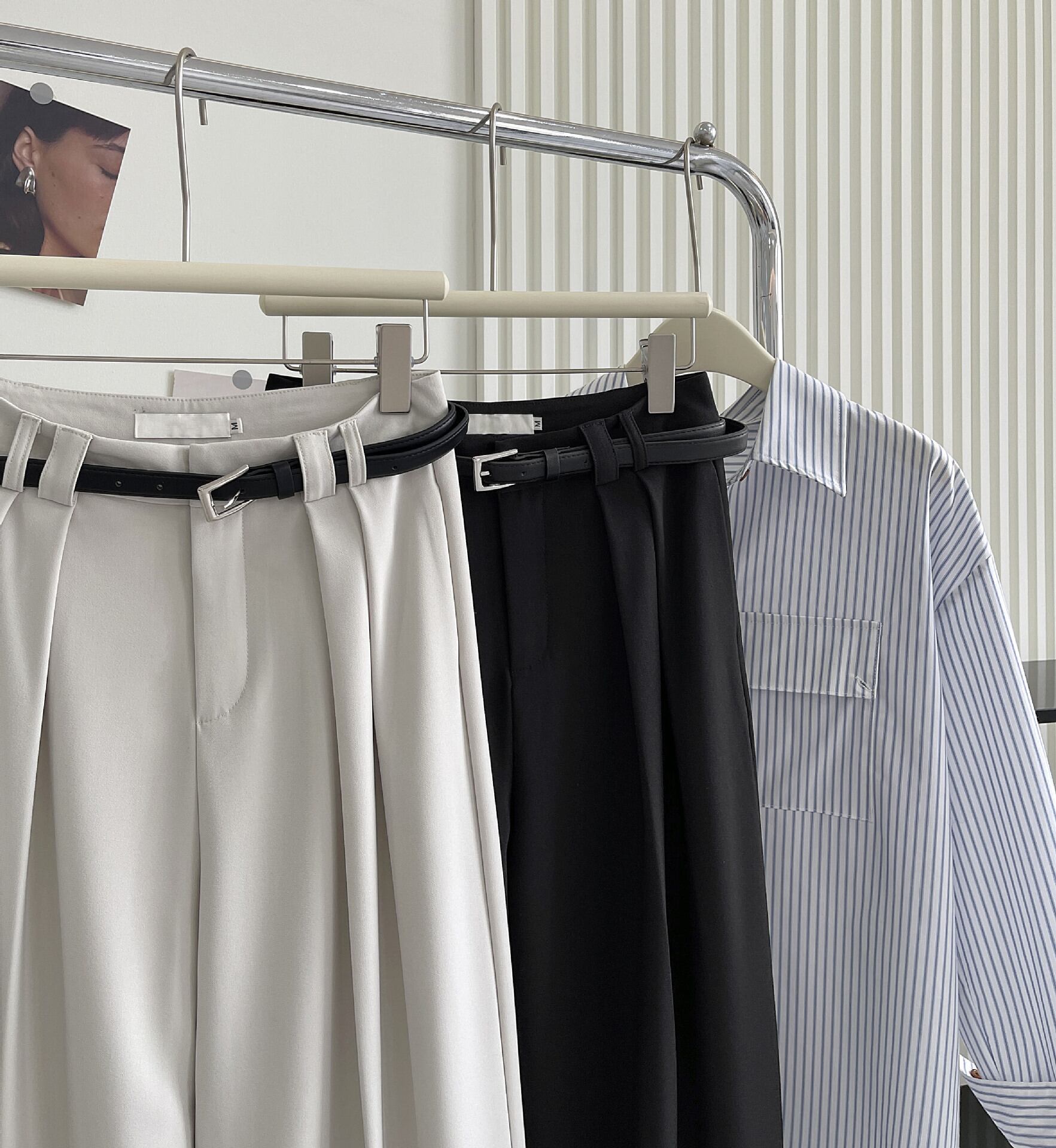 ハイウエスト設計で自然に脚長効果が生まれ、きれいめからカジュアルまで幅広く着こなせます。