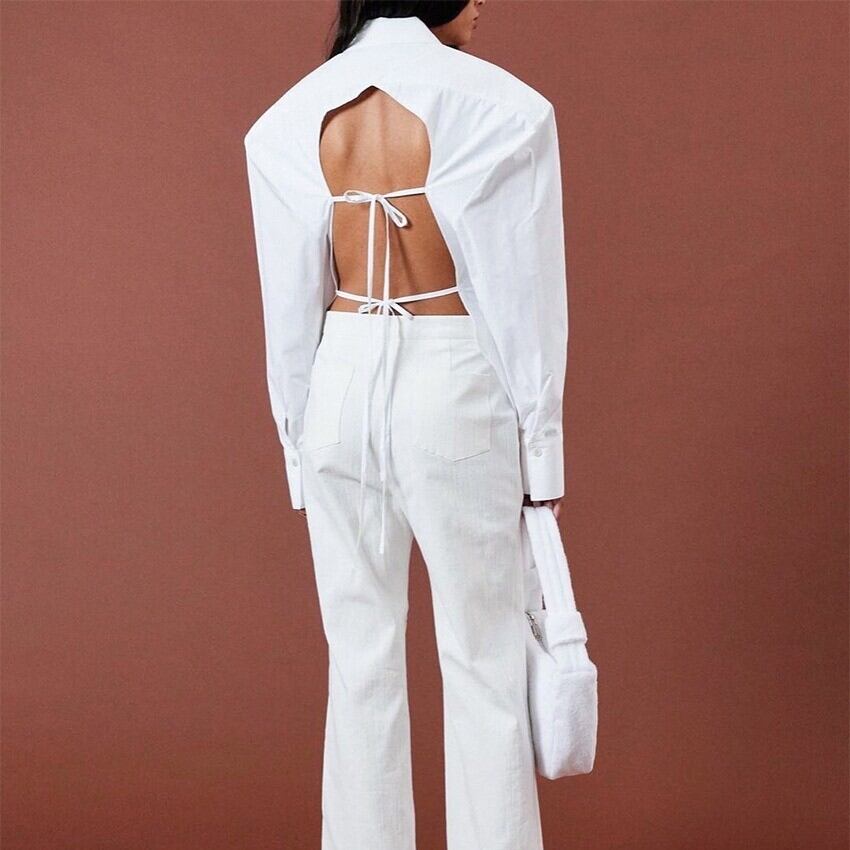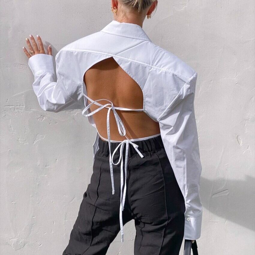 レディース トップス シャツ 長袖 襟付き 背中見せ ボタン 大人可愛い きれいめ おしゃれ かっこいい レトロ ガーリー クール 存在感 フォーマル 都会的 セクシー 無地 春 夏 通勤 デート お出かけ お泊まり パーティー イベント 旅行 レストラン 公園 女子会 休日 ホテル ショッピング コンサート ライブ カフェ 韓国 コーデ 楽ちん プレゼント 普段使い 着回し モテ インスタ映え S M L ホワイト