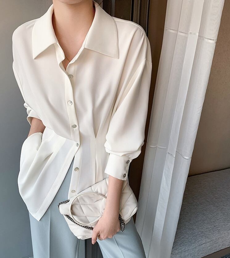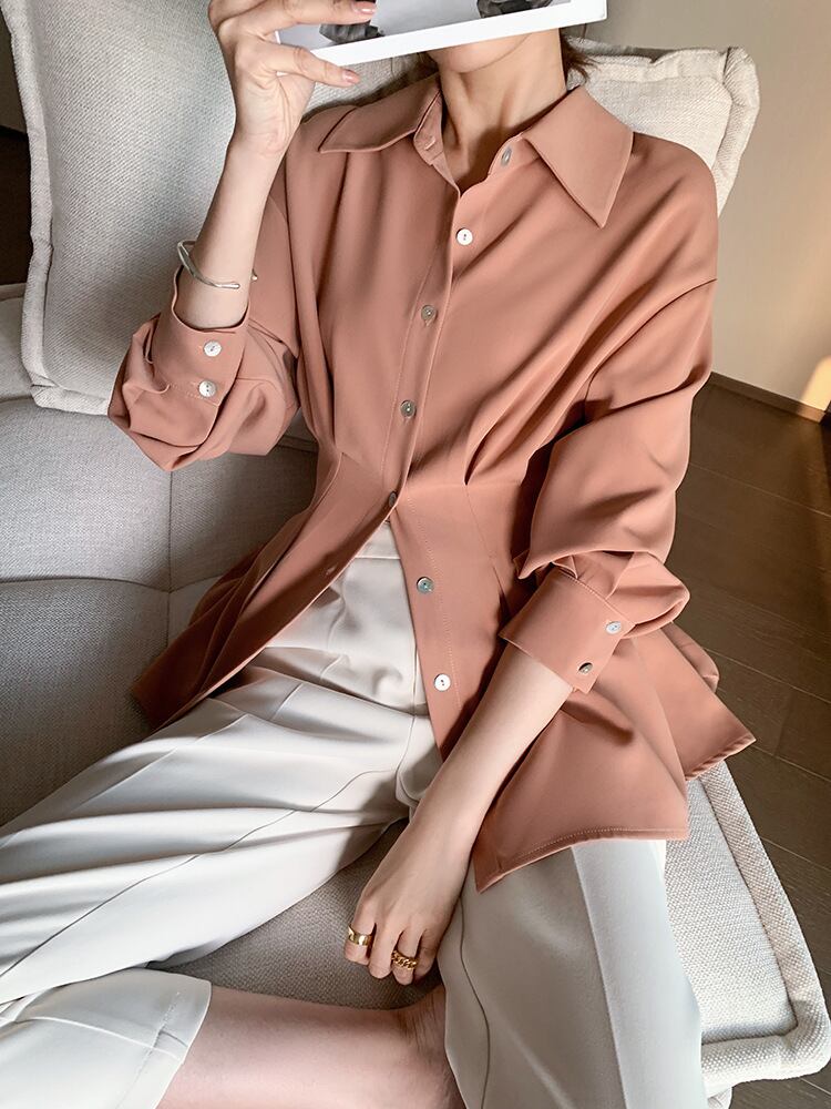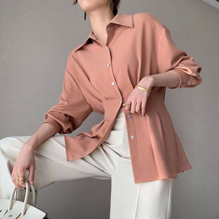 トップス シャツ 長袖 襟付き 前開き ウエストマーク ペプラム ミディアム丈 可愛い かわいい 大人可愛い きれいめ シンプル 上品 おしゃれ レトロ かっこいい カジュアル こなれ感 個性的 主役級 存在感 抜け感 春 秋 ナチュラル ベーシック エレガント 無地 女性用 レディース ママ OL 通勤 オフィス 学生 通学 デート お出かけ お泊まり 女子会 旅行 カフェ ショッピング コンパ 会議 MTG 普段使い デイリー イベント 着回し 重ね着 S M L トレンド モテ カラーバリエーション