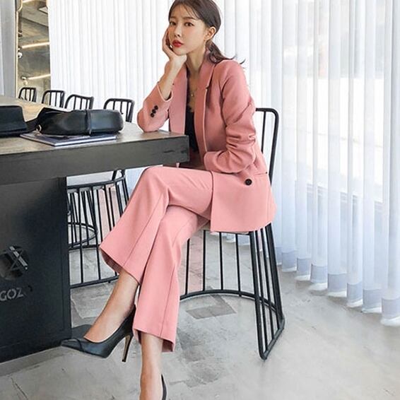2点セットのセットアップスーツで、ジャケットとクロップドパンツの組み合わせが魅力的です!
