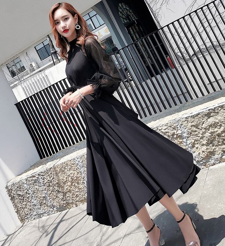 ドレス 衣装 イブニングドレス ミモレ丈ドレス ブラックドレス クルーネッ ボリューム袖 シースルー ハイウエスト バックシャン フレアスカート 光沢 ミモレ丈 ステージドレス 発表会 かわいい 大人可愛い きれいめ シンプル 上品 おしゃれ かっこいい レトロ こなれ感 個性的 主役級 存在感 抜け感 オールシーズン ロングシーズン エレガント 華やか ゴージャス 無地 レディース 女性用 結婚式 披露宴 パーティー 二次会 ディナー イベント 脚長 XS S M L XL 2XL 3XL 高級感
