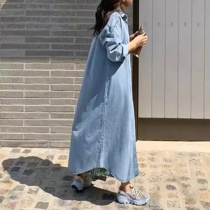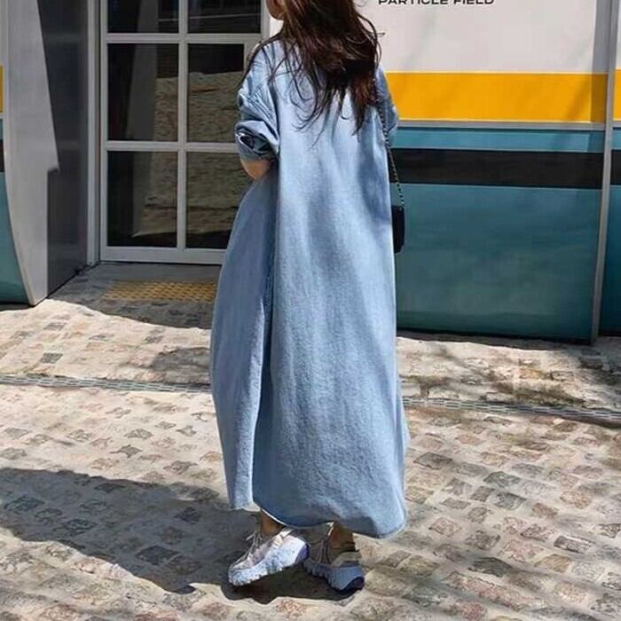 レディース ワンピース デニム ロング 長袖 襟付き ポケット ボタン 大人可愛い きれいめ カジュアル おしゃれ かっこいい ガーリー クール ナチュラル 無地 秋 冬 通勤 デート お出かけ お泊まり アウトドア キャンプ イベント 旅行 レストラン 公園 女子会 休日 ホテル ショッピング コンサート ライブ カフェ 韓国 コーデ 楽ちん プレゼント 普段使い 着回し モテ インスタ映え M L XL 2XL 大きいサイズ ブルー