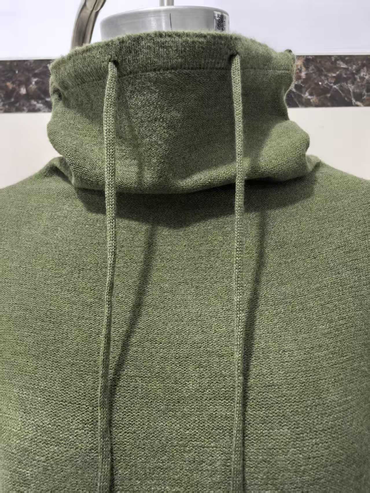 ニット素材で仕立てたパーカーは、オフタートルのボリューム感がほどよい存在感を生み、秋冬のコーデに暖かみを添えます。ドロップショルダーとゆったりオーバーサイズシルエットがこなれ感を演出し、シンプルなのに大人可愛い印象へ導きます。