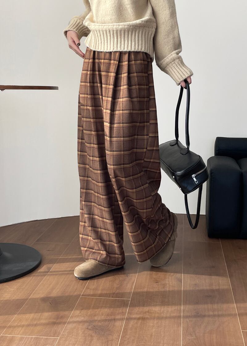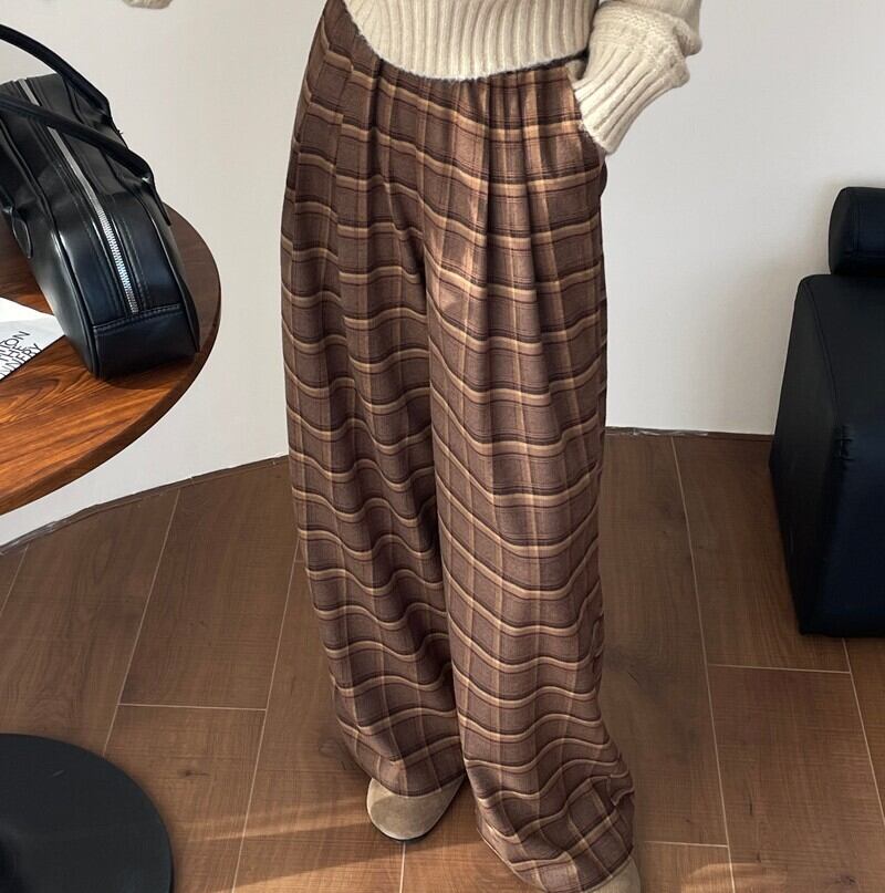 レディース パンツ ボトムス ワイドパンツ タックパンツ ロング ワイド ストレート ポケット ハイウエスト ウエストゴム かわいい 大人可愛い きれいめ シンプル カジュアル 上品 おしゃれ レトロ こなれ感 存在感 抜け感 ナチュラル リラックス チェック 格子柄 秋 冬 ママ 通勤 学生 学校 通学 デート お出かけ イベント 旅行 女子会 休日 ショッピング ライブ カフェ 楽ちん 体型カバー 脚長 普段使い 着回し 定番 M L ゆったり 茶色 ブラウン ベーシックカラー 大人カラー 秋カラー