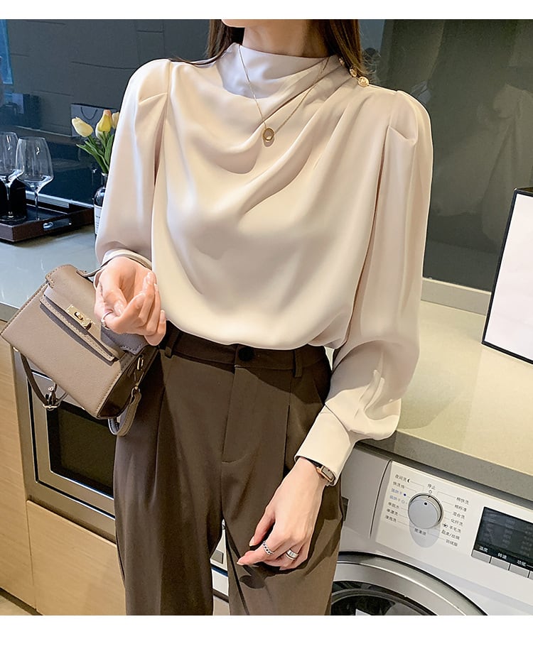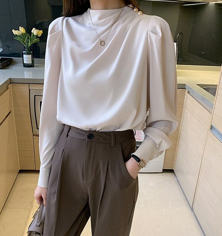 レディース トップス シャツ ブラウス ミディアム 長袖 パフスリーブ モックネック 大人可愛い きれいめ シンプル 上品 おしゃれ エレガント フォーマル 都会的 シック スタイリッシュ 無地 春 秋 授業参観 ママ オフィス ビジネス OL 通勤 デート お出かけ イベント レストラン 女子会 休日 ホテル 発表会 コンサート カフェ 婚活 普段使い 着回し 清楚 S M L XL 2XL 大きいサイズ ゆったり 白 ホワイト ベージュ ブルー 緑 グリーン 大人カラー 春カラー カラバリ