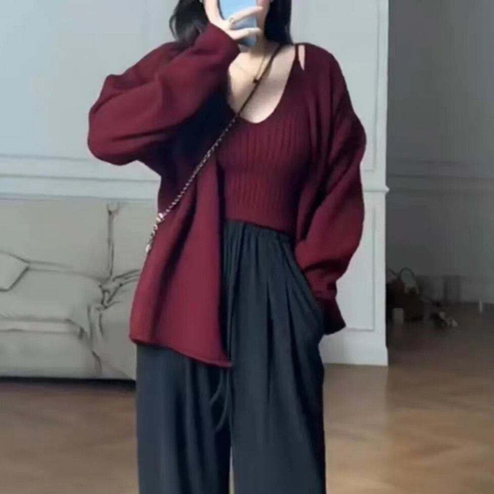 アンサンブル セットアップ 2点セット ツーピース リブキャミソール+ニットカーディガン セット 長袖 オーバーカーディガン クロップドリブキャミソール 無地 レディース かわいい 大人可愛い おしゃれ ガーリー エレガント キュート きれいめ 上品 お出かけ ショッピング 休日 通勤 通学 デート 女子会 イベント 旅行 体型カバー ゆったり スタイルUP デイリー 普段使い フェミニン シンプル カジュアル マニッシュ レトロ スタイリッシュ 高見え 鮮度アップ