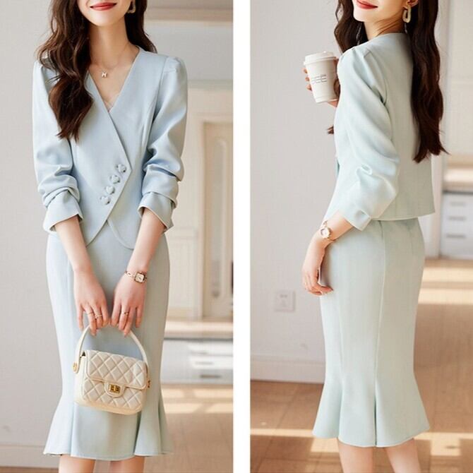 2点セット レディース スカート ジャケット スーツ ミディアム 長袖 Vネック スリム ボタン 大人可愛い きれいめ 上品 おしゃれ かっこいい ガーリー クール フォーマル 都会的 無地 春 夏 秋 冬 オールシーズン 授業参観 会議 ミーティング プレゼン オフィス ビジネス 通勤 デート お出かけ パーティー イベント 旅行 レストラン 女子会 ホテル 韓国 コーデ 楽ちん プレゼント 着回し モテ インスタ映え S M L XL 2XL 3XL 大きいサイズ ブラック ピンク ライトブルー
