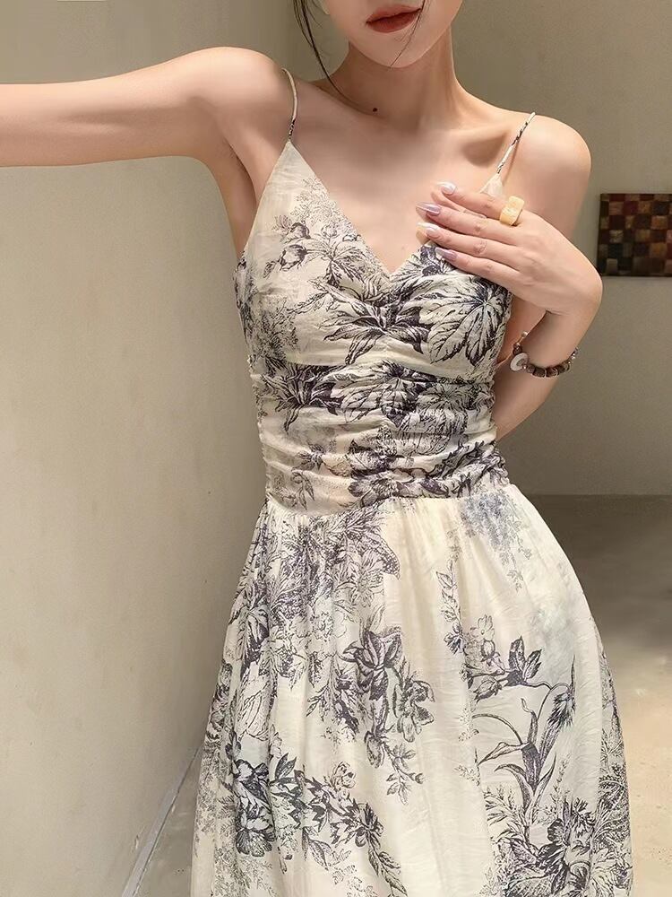 大人可愛いデザインのマキシ丈ワンピースは、キャミソールスタイルと背中開きのセクシーさが魅力です。