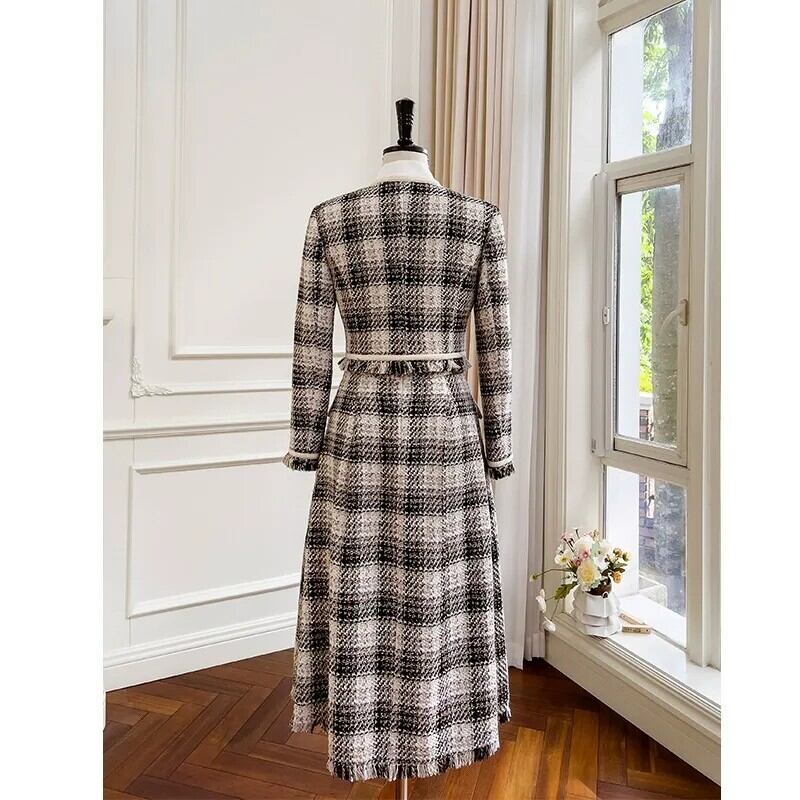 レディース スカート ジャケット ミディアム 長袖 ラウンドネック ポケット ボタン 大人可愛い きれいめ 上品 おしゃれ かっこいい レトロ ガーリー クール 存在感 フォーマル 都会的 チェック 春 秋 授業参観 通勤 デート お出かけ お泊まり パーティー イベント 旅行 レストラン 女子会 休日 ホテル カフェ 韓国 コーデ 楽ちん プレゼント モテ 清楚 インスタ映え S M L