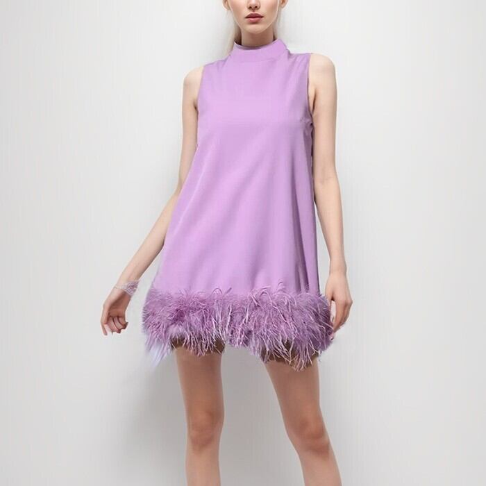 ドレス ワンピース ウェディング パーティー 結婚式 二次会 披露宴 演奏会 発表会 ステージ 舞台 フォーマル ショート ノースリーブ スタンドカラー Aライン ファスナー ファー 大人可愛い 上品 おしゃれ かっこいい ガーリー クール エレガント 主役級 存在感 ゴージャス 華やか 無地 イベント ホテル レストラン 韓国 美脚 高見え 格上げ 女子会 春 夏 S M パープル