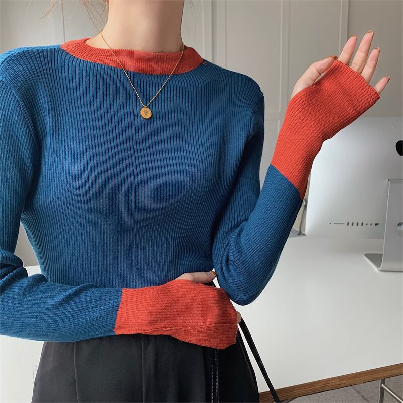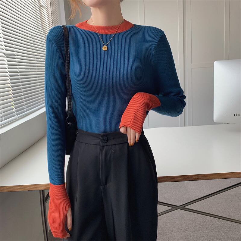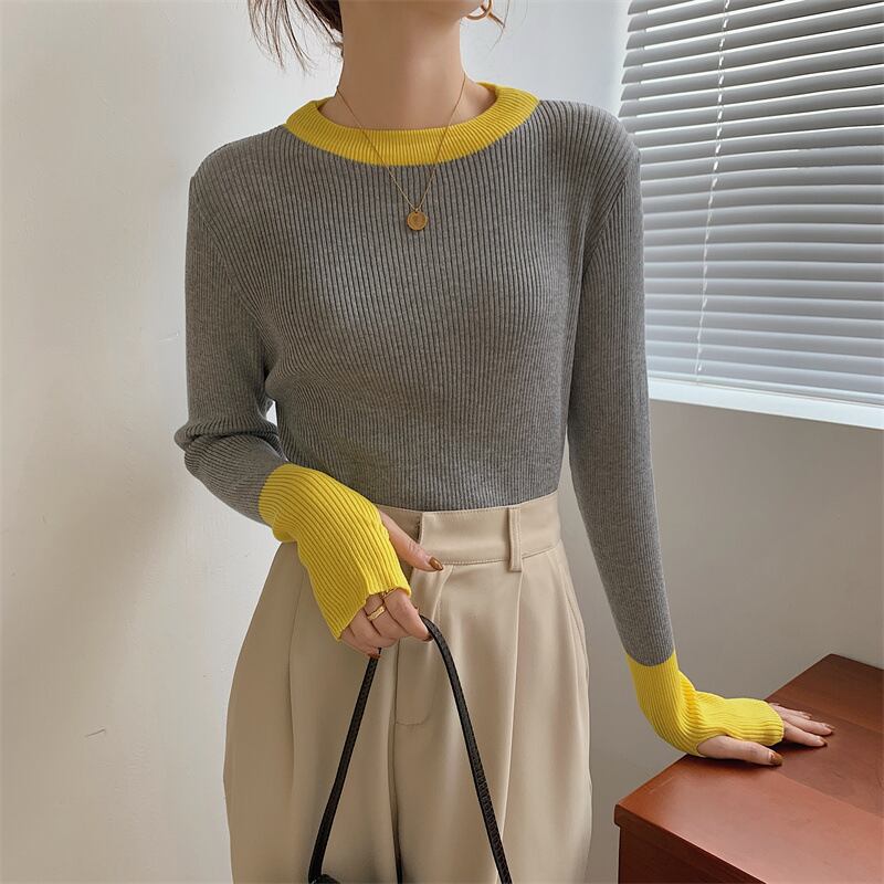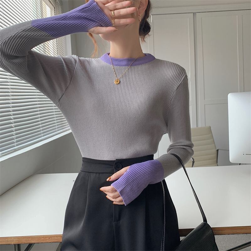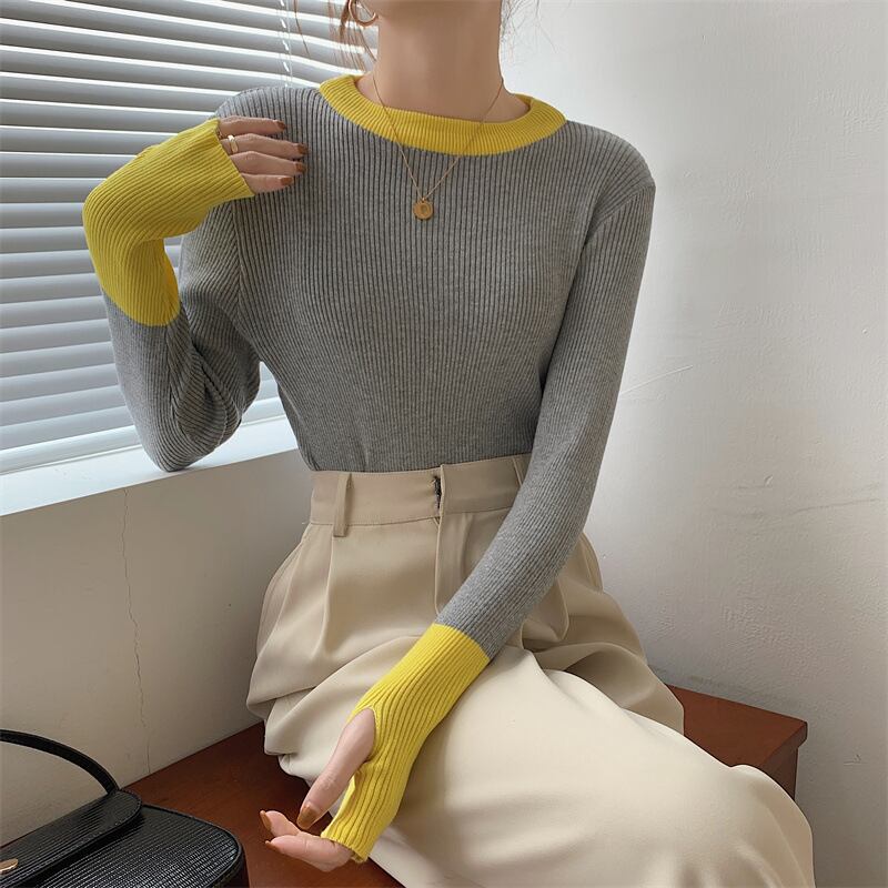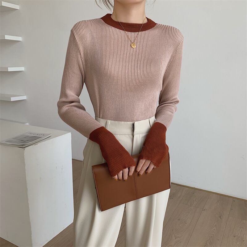 レディース トップス ニット 長袖 ラウンドネック タイト 細身 リブニット バイカラー かわいい 大人可愛い カジュアル おしゃれ キュート ベーシック ナチュラル 無地 春 秋 冬 ママ 通勤 学生 学校 通学 デート お出かけ 旅行 公園 女子会 休日 ショッピング お花見 カフェ 普段使い 着回し ゆったり ゆる フリーサイズ ホワイト ブラック ライトグレー ダークグレー カーキ ネイビー ベーシックカラー 大人カラー 春カラー 秋カラー カラバリ
