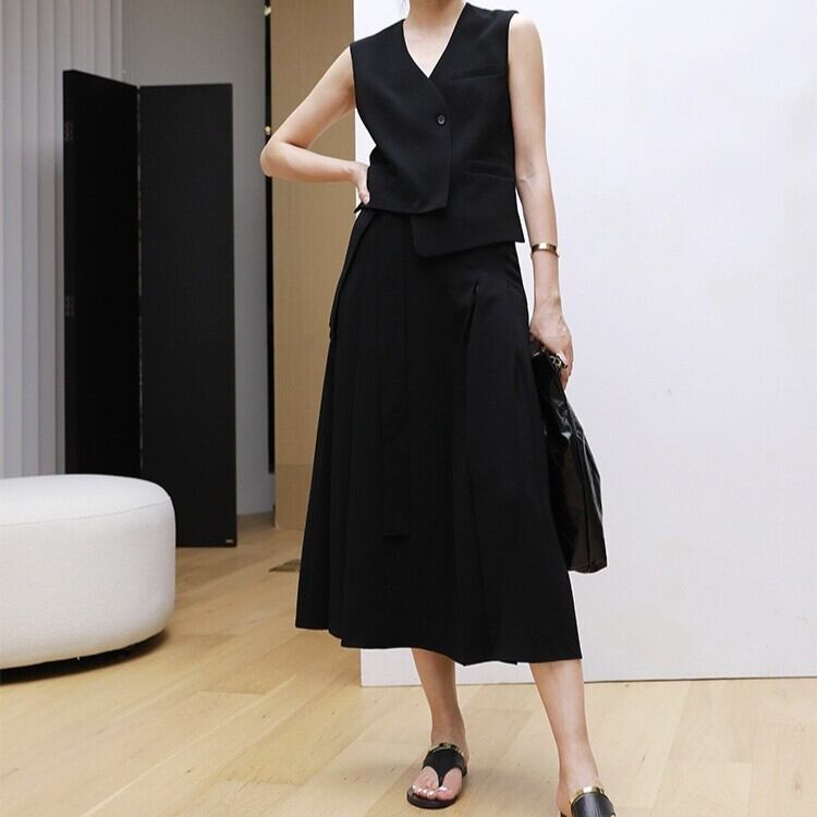 レディース スカート トップス ベスト スーツ 膝丈 ノースリーブ ポケット ボタン 大人可愛い きれいめ おしゃれ かっこいい ガーリー クール フォーマル 都会的 ナチュラル 無地 春 夏 授業参観 会議 ミーティング プレゼン オフィス ビジネス 通勤 デート お出かけ 旅行 レストラン ホテル 韓国 コーデ 楽ちん プレゼント 着回し モテ 清楚 インスタ映え 定番 S M L ブラック カーキ
