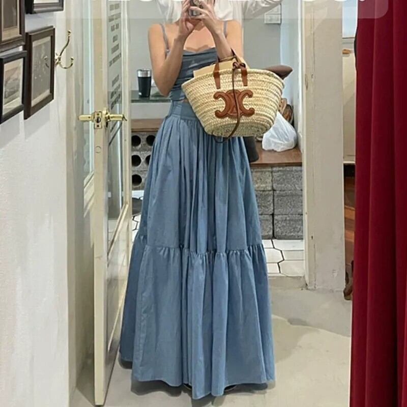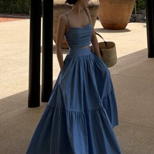 2点セット レディース スカート トップス キャミソール ロングスカート ノースリーブ スリム 大人可愛い きれいめ おしゃれ かっこいい ガーリー クール 都会的 ナチュラル 無地 春 夏 通勤 デート お出かけ お泊まり イベント リゾート 旅行 海 プール レストラン ビーチ 女子会 休日 ホテル ショッピング カフェ 韓国 コーデ 楽ちん プレゼント 普段使い 着回し モテ インスタ映え S M L ブルー