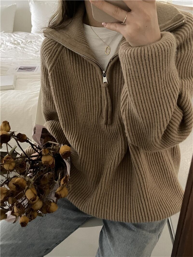 レディース ニット セーター レギュラー丈 長袖 ラグランスリーブ スタンドカラー タイト ストリート ハーフジップ 中厚手 リブニット アクリル繊維 シンプル カジュアル レトロ 存在感 無地 冬 オフィス ビジネス OL 通勤 お出かけ お泊まり アウトドア イベント リゾート 旅行 公園 女子会 休日 ショッピング 発表会 コンサート ライブ カフェ 普段使い フリーサイズ ブラック 紫 グレー オフホワイト カーキ ピンク アプリコット オリーブグリーン
