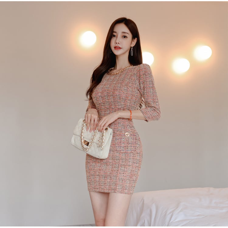 チェーン装飾 レディース ワンピース ミニ ショート 膝上 ミドル丈 7分袖 ラウンドネック 襟なし ノーカラー タイト スリム 細身 スマート フェミニン ポケット ハイウエスト コンサバ ボタン 大人可愛い きれいめ シンプル 上品 おしゃれ こなれ感 エレガント 抜け感 都会的 ラグジュアリー 格子柄 春 秋 誕生日 ハロウィン デート お出かけ パーティー イベント ホテル ショッピング コスプレ 韓国 オルチャン コーデ 美脚 脚長 モテ インスタ映え セクシー S M L XL 大人カラー