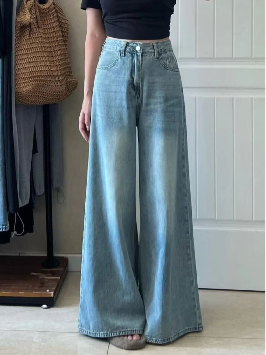 ワイドパンツのシルエットは、リラックス感と個性的な印象を与えてくれます。