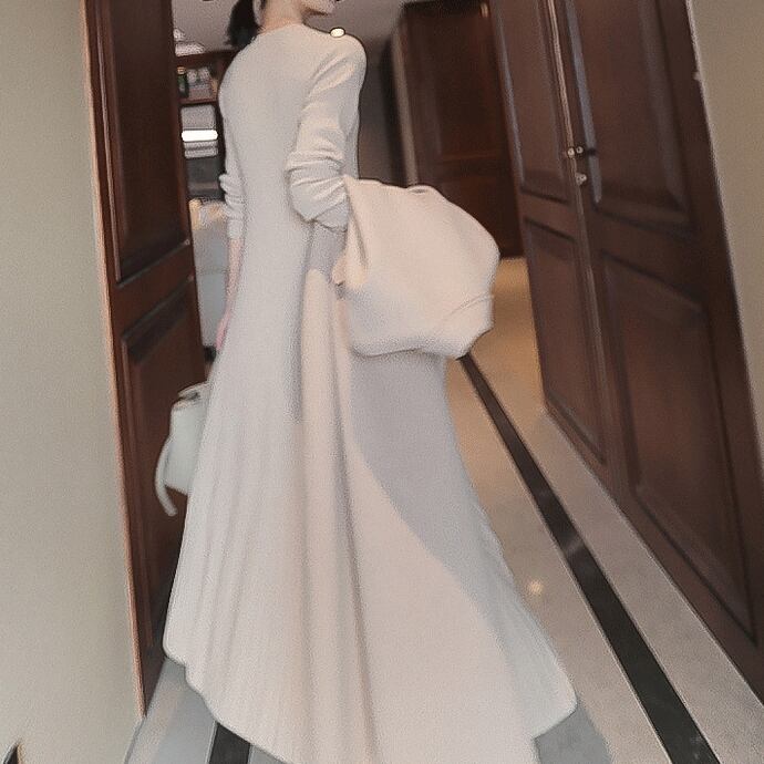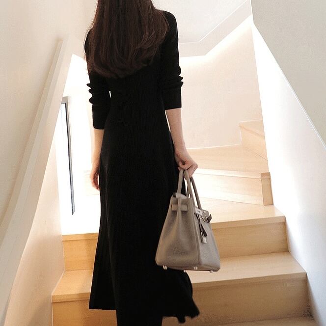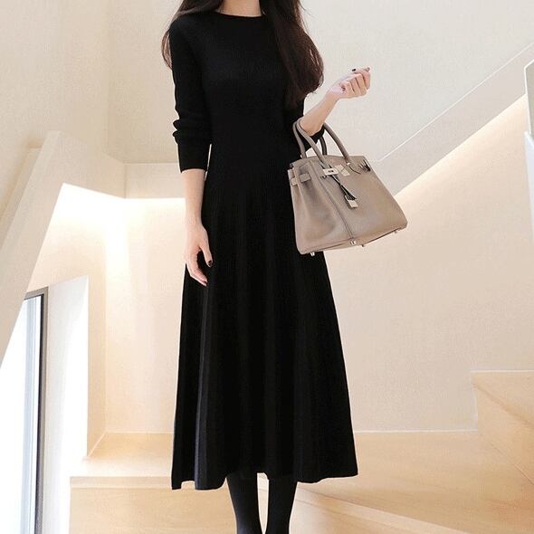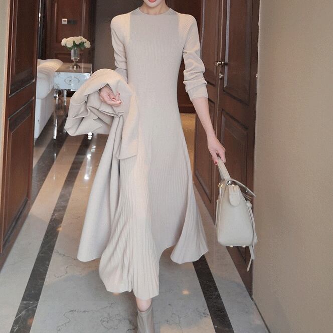 ワンピース ロングワンピース 長袖 クルーネック ハイウエスト Aラインスカート ニット 可愛い かわいい 大人可愛い きれいめ シンプル 上品 おしゃれ レトロ かっこいい カジュアル こなれ感 個性的 主役級 存在感 抜け感 秋 冬 ベーシック ナチュラル エレガント フェミニン 無地 女性用 レディース ママ OL 通学 オフィス 学生 通学 デート お出かけ お泊まり 女子会 旅行 カフェ ショッピング コンパ 普段使い デイリー イベント 着回し 脚長 S M L XL トレンド モテ