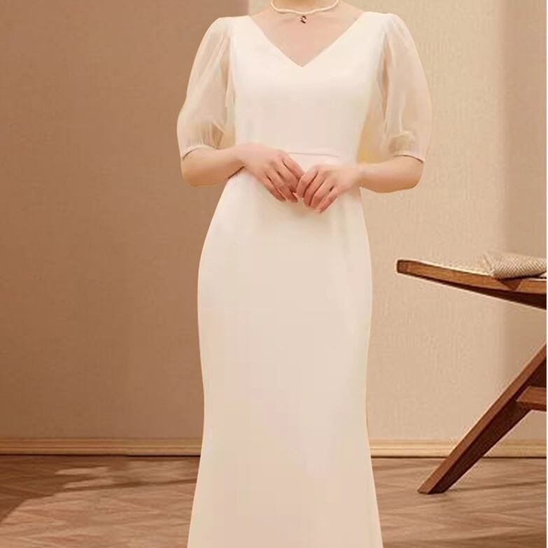 ドレス 衣装 ウエディングドレス イブニングドレス ロングドレス 披露宴ドレス 5分袖 Vネック ハイウエスト フィッシュテール ステージドレス 発表会 かわいい 大人可愛い きれいめ シンプル 上品 おしゃれ かっこいい レトロ こなれ感 個性的 主役級 存在感 抜け感 オールシーズン ロングシーズン エレガント 華やか ゴージャス キュート 無地 レディース 女性用 結婚式 披露宴 パーティー 二次会 ディナー ホテル イベント 脚長 XS S M L XL XL 2XL 3XL トレンド 高級感