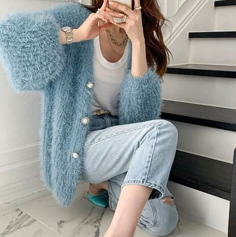 ふわふわ素材のワイドシルエットが抜け感をつくる、Vネックカーディガン。