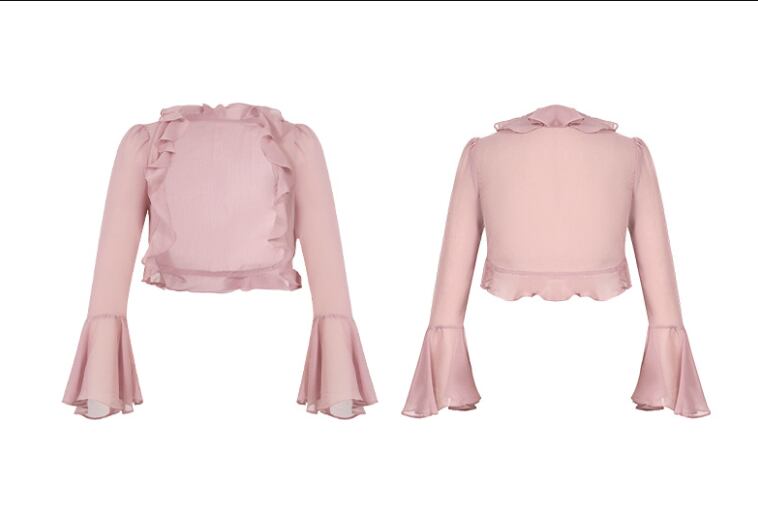 大人可愛いスタイルを引き立てる、夏にぴったりのレディースカーディガンが登場です!ミニ丈のデザインとベルスリーブが華やかさをプラスし、涼しげなシフォン素材が優雅な印象を与えます。透け感のある体にフィットするシルエットで、どんなコーディネートにもぴったり合わせやすい一着です。