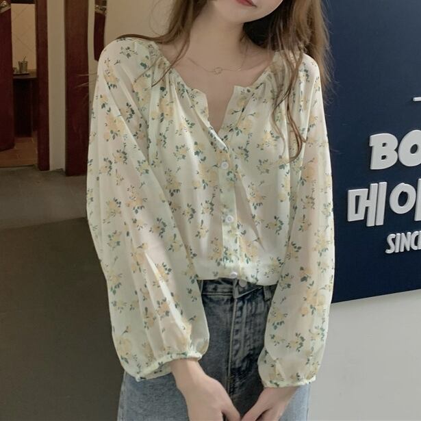 トップス シャツ シフォンシャツ 長袖 ラウンドネック 前開き ボタン ミディアム丈 可愛い かわいい 大人可愛い きれいめ シンプル 上品 おしゃれ レトロ かっこいい カジュアル こなれ感 ルーズ 個性的 主役級 存在感 抜け感 春 夏 ナチュラル ベーシック キュート 小花柄 女性用 レディース ママ OL 通勤 オフィス 学生 通学 デート お出かけ お泊まり 女子会 旅行 カフェ 会議 MTG ショッピング コンパ 普段使い デイリー イベント 着回し 重ね着 S M L トレンド モテ