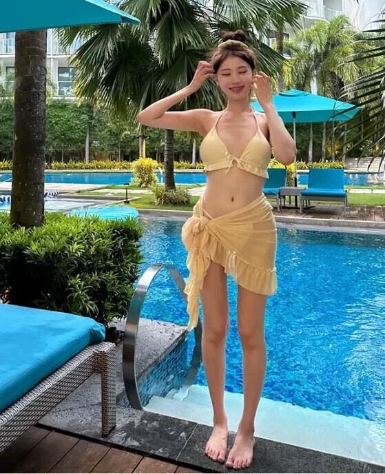 シンプルながら華やかさもあり、リゾートやビーチで自然と視線を集めます。無地デザインでコーデしやすく、カジュアルでガーリーな雰囲気が魅力です。