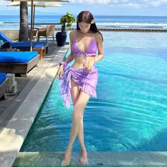 パレオ付き 水着 ビキニ スイムウェア レディース 紐 ホルターネック ノンワイヤー パッド付き リボン フリル 伸縮性 シアー スリーピース 上下セット かわいい 大人可愛い きれいめ シンプル カジュアル おしゃれ お洒落 存在感 キュート ガーリー セクシー フェミニン ヘルシー 無地 リゾート 旅行 温泉 プール 夏 海 ビーチ 脚長 スタイルアップ 韓国 モテ インスタ映え こなれ感 S M L スリム イエロー 紫 パープル 黄色 春カラー