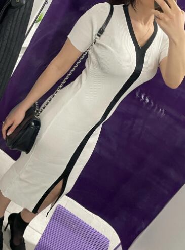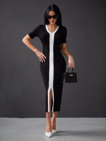 レディース ワンピース 膝下 長袖 Vネック タイト スリム スリット ハイウエスト ボディコン 中厚手 ポリエステル 大人可愛い きれいめ 上品 おしゃれ かっこいい アジアン 個性的 エレガント 主役級 存在感 都会的 無地 秋 冬 クリスマス ママ 20代 30代 デート お出かけ パーティー レストラン バカンス ショッピング コンサート ライブ 美脚 脚長 着回し インスタ映え スタイルアップ セクシー フリーサイズ 白 黒