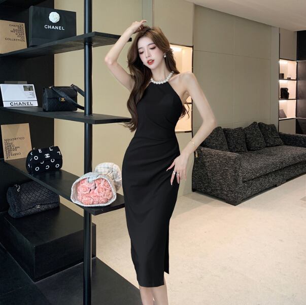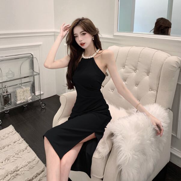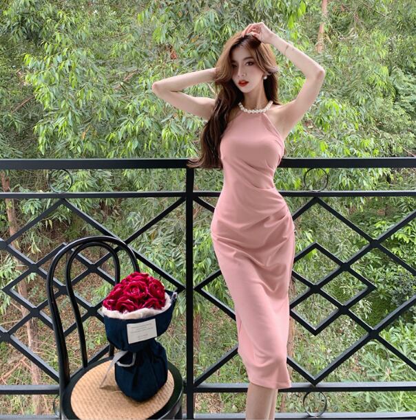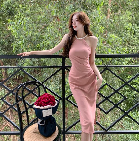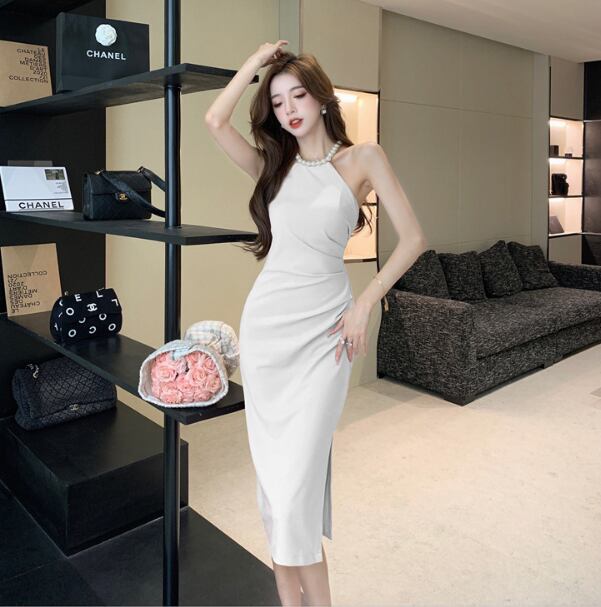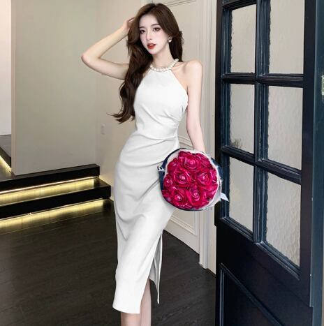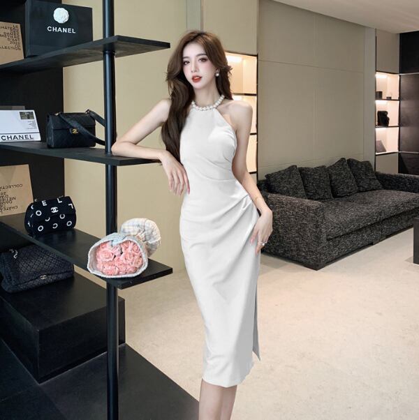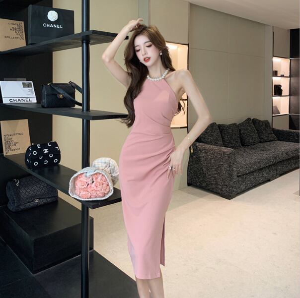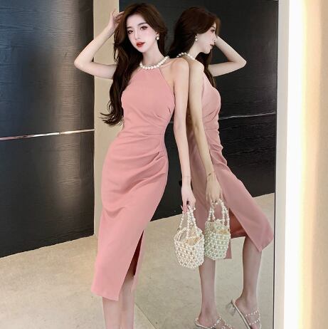 レディース ドレス 膝下 ミディ丈 袖なし ホルターネック 襟なし タイト スリム 細身 スリット きれいめ シンプル 上品 おしゃれ こなれ感 クール モード系 エレガント モダン 主役級 存在感 都会的 ベーシック ナチュラル スタイリッシュ クール 無地 春 夏 パーティー イベント 美脚 脚長 モテ トレンド 流行 インスタ映え 定番 スタイルアップ セクシー S M L XL サイズ豊富 ホワイト ブラック ピンク レッド ベーシックカラー 大人カラー カラバリ