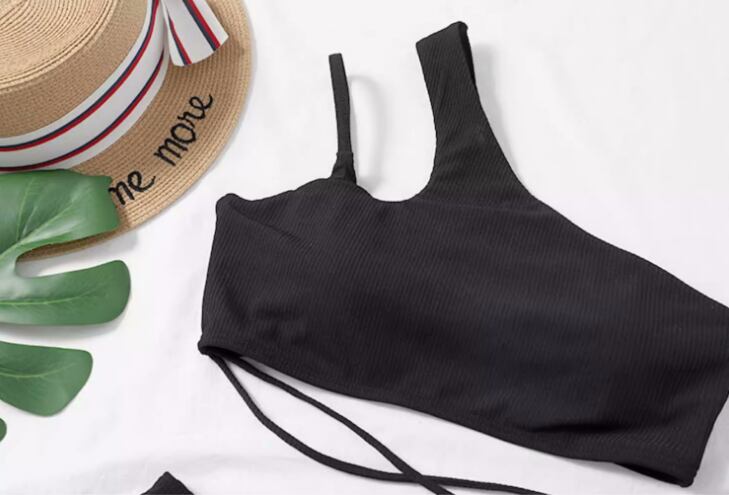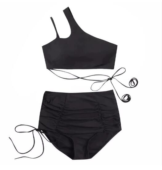 ワンショル×紐デザインが目を惹く、スタイリッシュなツーピースビキニ。