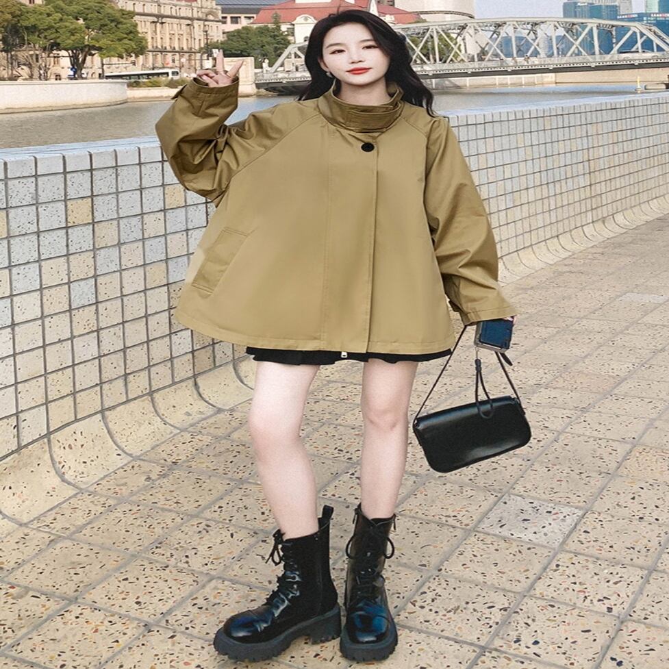 トレンチコート アウター コート ショートコート ショートトレンチコート フレアショートトレンチ ハイネック ショート丈 フレア オーバーサイズ ドレープ 無地 アースカラー レディース かわいい 大人可愛い おしゃれ ガーリー エレガント キュート きれいめ 上品 お出かけ ショッピング 休日 通勤 通学 デート 女子会 体型カバー ゆったり スタイルUP デイリー 普段使い フェミニン 脚長 美脚 シンプル カジュアル マニッシュ レトロ スタイリッシュ 高見え 鮮度アップ