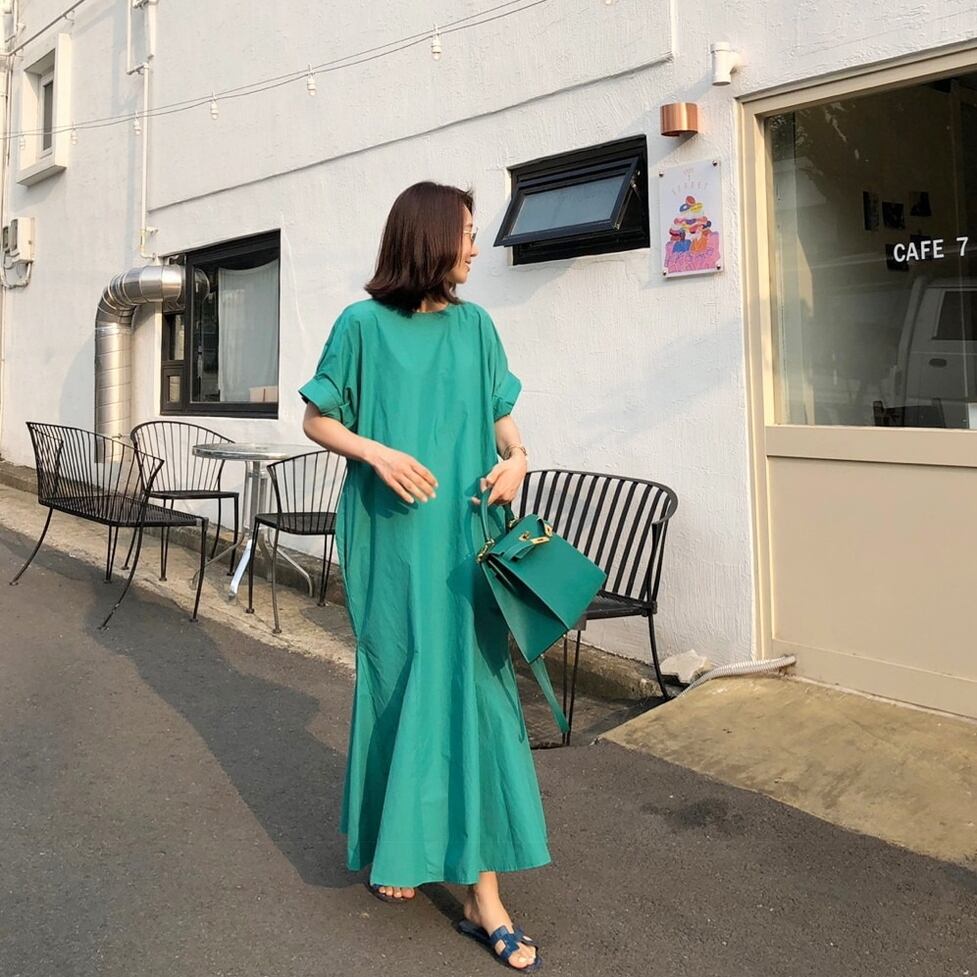 リラックスした雰囲気で手軽に着られるロングワンピース。品のいいカジュアル表情の異なるスタイルに。なにと合わせても可愛く整う服。街でもノンストレスなシルエットで過ごしたい余裕のあるフォルムにもキレは残して。
