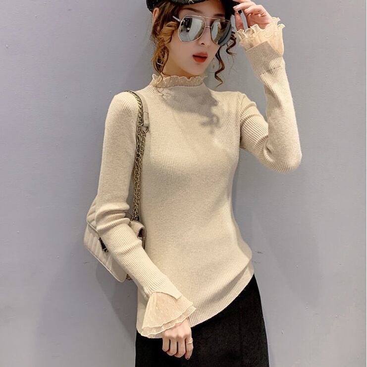 トップス ニットソー 長袖 ハイネック 袖フリル ハイネック レース プルオーバー ミディアム丈 可愛い かわいい 大人可愛い きれいめ シンプル 上品 おしゃれ レトロ かっこいい カジュアル こなれ感 個性的 主役級 存在感 抜け感 春 秋 冬 ナチュラル ベーシック キュート ガーリー 無地 女性用 レディース ママ OL 通勤 オフィス 学生 通学 デート お出かけ お泊まり 女子会 旅行 カフェ ショッピング コンパ 普段使い デイリー イベント 着回し 重ね着 ワンサイズ モテ トレンド