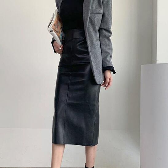バックスリットとハイウエストデザインが魅力的で、タイトなシルエットが女性らしさを引き立てます。