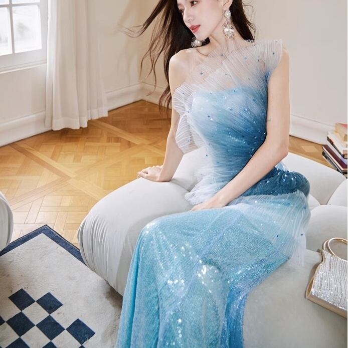 華やかでエレガントなイブニングドレス。