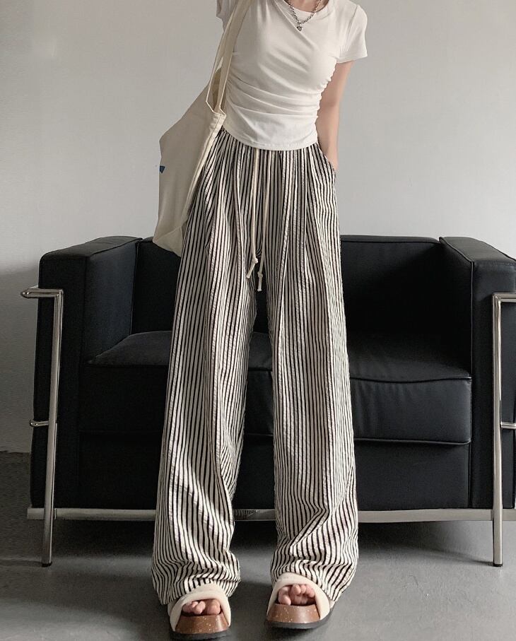 ボトムス パンツ ズボン ロングパンツ ワイドパンツ ウエストゴム ポケット リラックス かわいい 可愛い 大人可愛い きれいめ シンプル 上品 レトロ おしゃれ かっこいい カジュアル こなれ感 個性的 主役級 存在感 抜け感 春 夏 ベーシック ナチュラル メンズライク ストライプ柄 女性用 レディース ママ OL 通勤 オフィス 学生 通学 デート お出かけ お泊まり 女子会 旅行 休日 カフェ ショッピング イベント コンパ 普段使い デイリー 着回し 脚長 M L XL 2XL トレンド モテ