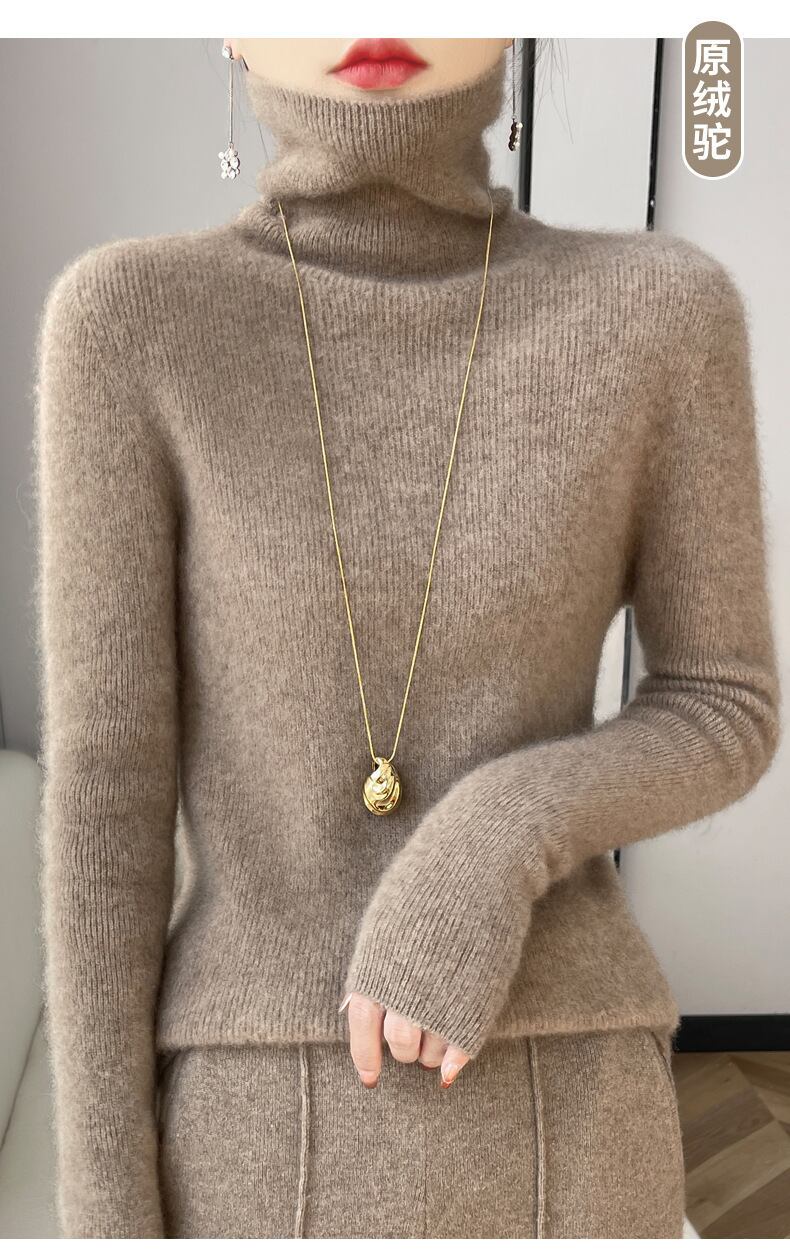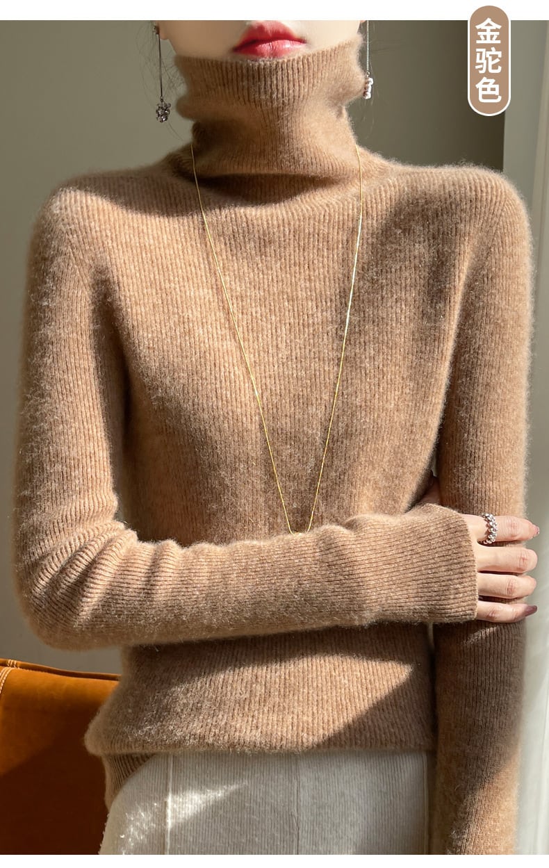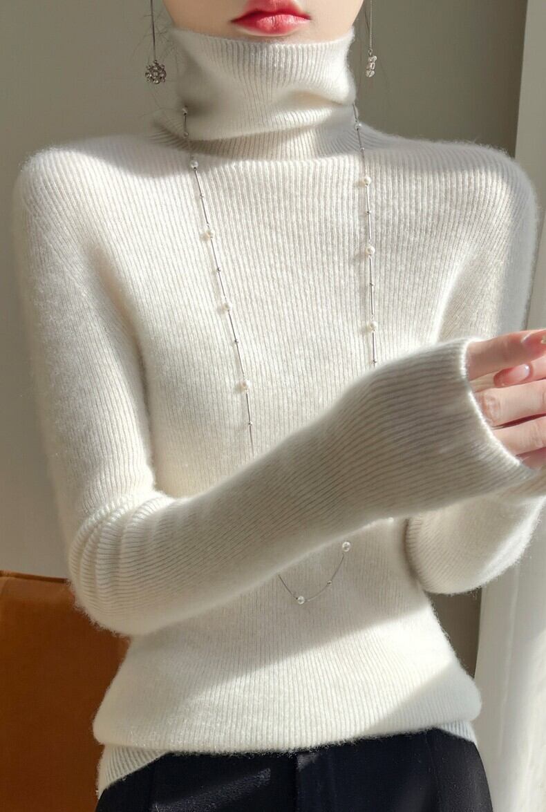 ふわりと柔らかな肌触りが心地よい、細身シルエットの長袖ハイネックニットです。