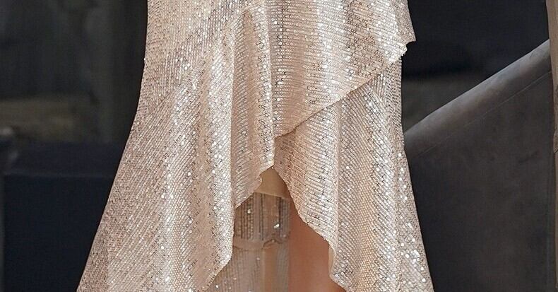 スパンコールのしなやかな光沢が、特別な場面をより華やかに彩るロングドレスです。