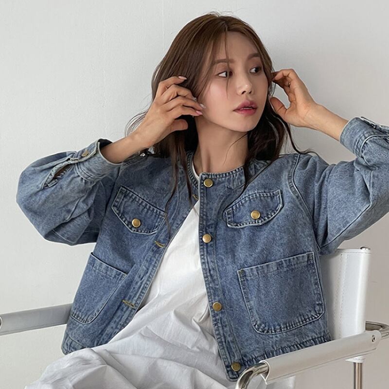 レディース ジャケット デニム ショート 長袖 レギュラースリーブ 襟なし ストレート ストリート ポケット ボタン シングルブレスト デニム アクリル繊維 大人可愛い カジュアル 個性的 存在感 無地 秋 オフィス ビジネス OL 通勤 デート お出かけ アウトドア キャンプ イベント リゾート 旅行 公園 女子会 休日 カフェ フリーサイズ ブラック ブルー