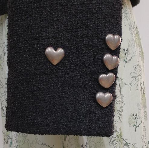 レディース トップス コート ブルゾン アウター 上着 前開き ショート 長袖 襟なし ボタンダウン タイト ポケット 前開き ボタン リベット 厚手 ツイード ウール ポリエステル かわいい アジアン こなれ感 個性的 主役級 存在感 学生風 無地 ハート柄 秋 ハロウィン 10代 20代 お出かけ イベント 女子会 発表会 コンサート ライブ 重ね着 韓国 暖かい 防寒 脚長 着回し インスタ映え S M L 黒